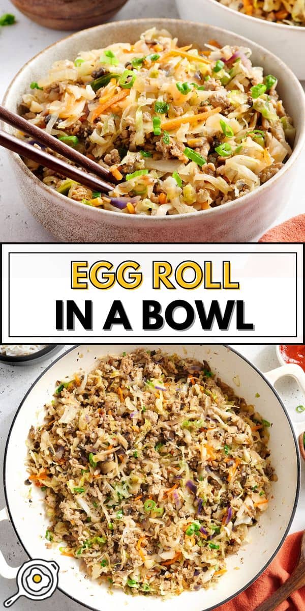 This Egg Roll in a Bowl is a deconstructed model of a standard egg roll, that includes all of the basic flavors with out the wrapper or deep-frying. It is a fast, weeknight-friendly meal, ready in a single skillet.